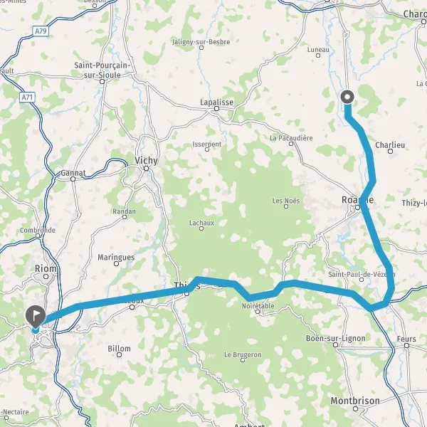 Continuer et rejoindre A89 E70. Continuer sur 83 kilomètres