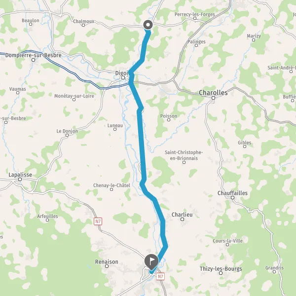Au rond-point, prendre la 2ème sortie sur D994 (Route de Digoin) et continuer sur 11 kilomètres