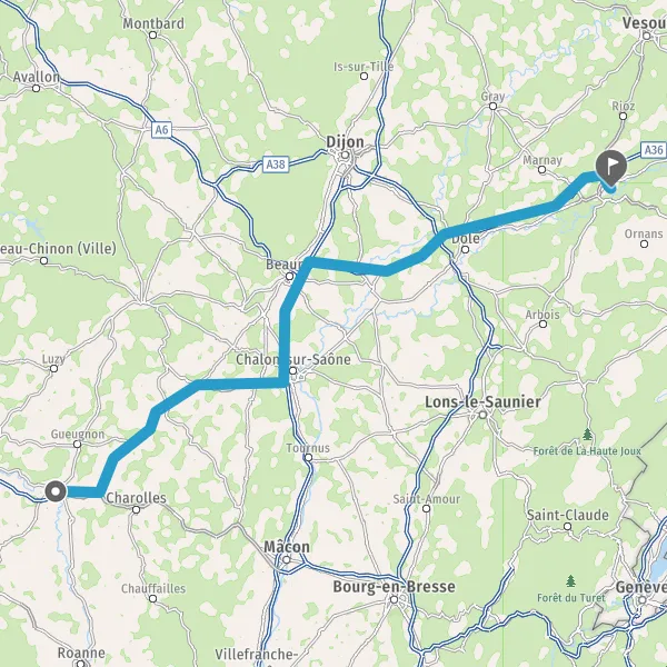 Prendre à droite et rejoindre A36. Continuer sur 92 kilomètres