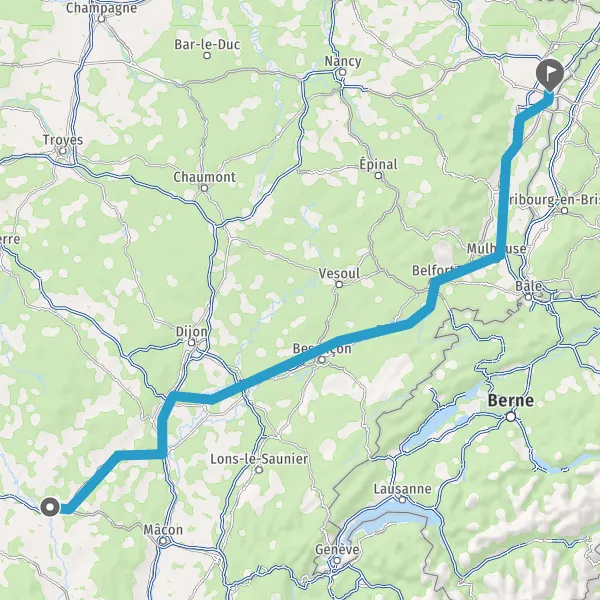 Prendre à droite et rejoindre A36. Continuer sur 225 kilomètres