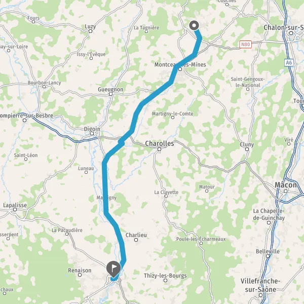 Au rond-point, prendre la 2ème sortie sur D482 (Rue de Charlieu) et continuer sur 800 mètres