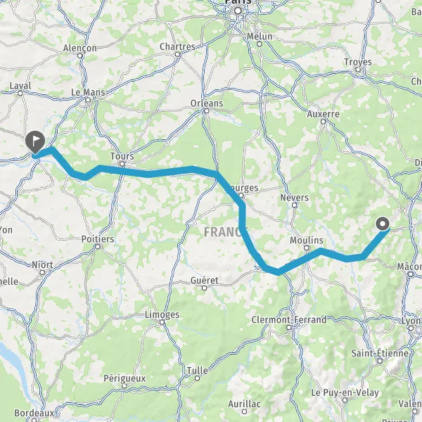 Prendre à droite et rejoindre A85 E604. Continuer sur 205 kilomètres