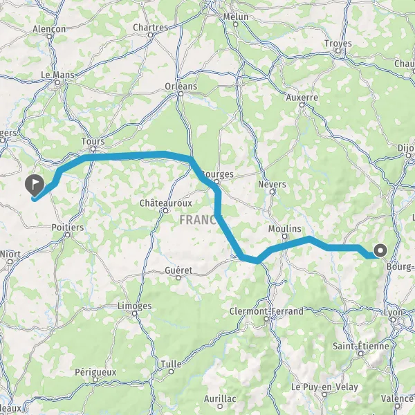 Prendre à droite et rejoindre A85 E604. Continuer sur 115 kilomètres