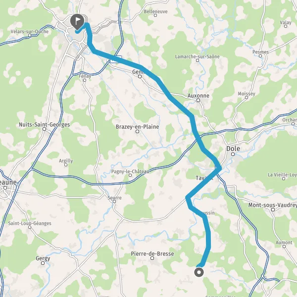 Au rond-point, prendre la 2ème sortie sur D673 (Rue de Dole) et continuer sur 1,2 kilomètre