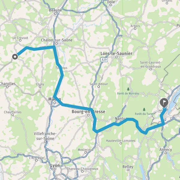 Prendre à droite et rejoindre A40. Continuer sur 60 kilomètres