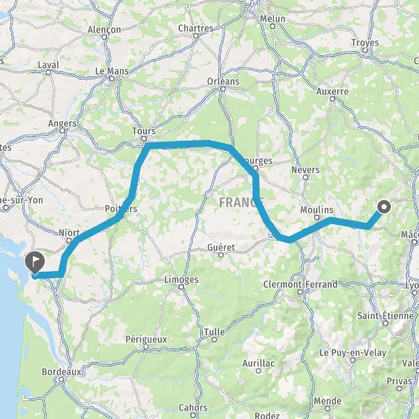 Tourner légèrement à droite sur D739 (Rue Émile Dubreuil) et continuer sur 18 kilomètres