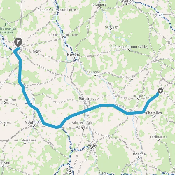 Prendre un ticket (Péage Molinet Est) Payer 1,30 € (Péage Molinet Ouest) Prendre un ticket (Péage Montbeugny Est) Payer 1,90 € (Péage Montbeugny Ouest) Prendre un ticket (Péage Le Montet Est) Payer 1,00 € (Péage Le Montet Ouest) Prendre un ticket (Péage Deux chaises) 1,7 km