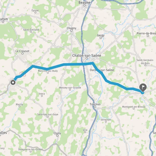 Au rond-point, prendre la 2ème sortie sur D160 (Route de Louhans) et continuer sur 6,9 kilomètres