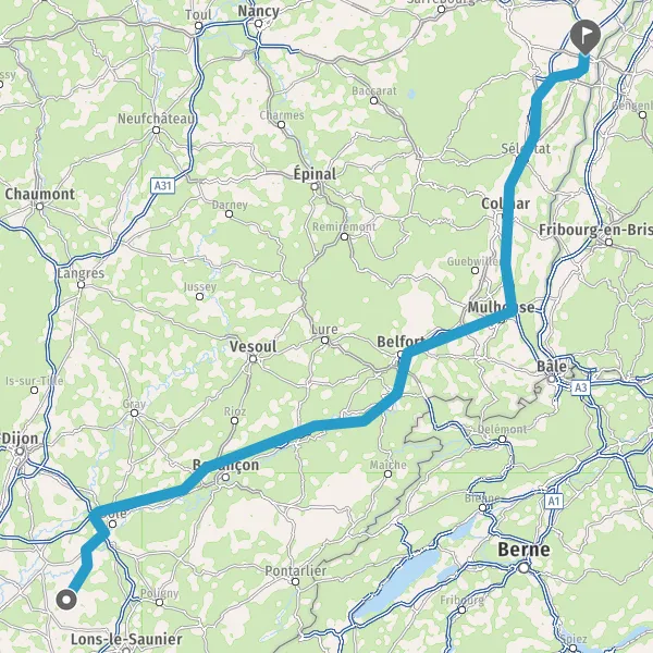 Prendre à droite et rejoindre A36 E60. Continuer sur 185 kilomètres