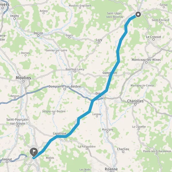 Tourner légèrement à droite sur D994 (Route de Gueugnon) et continuer sur 1,1 kilomètre