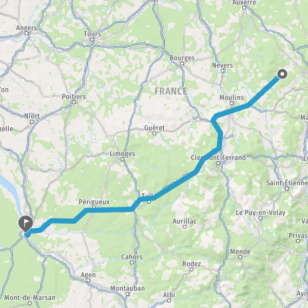 Prendre à droite et rejoindre A89 E70. Continuer sur 160 kilomètres