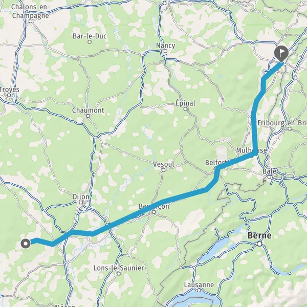 Prendre à droite et rejoindre A36. Continuer sur 225 kilomètres