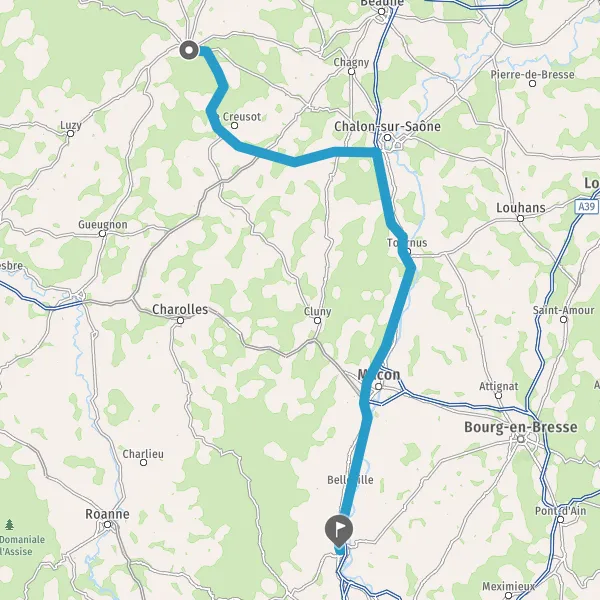 Tourner à droite sur D680 (Route de Chalon) et continuer sur 22 kilomètres