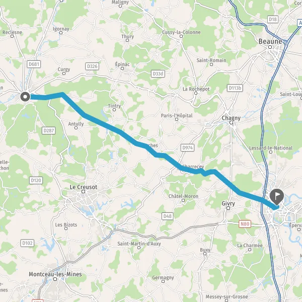 | Distance en voiture | 51 km à 68 km |