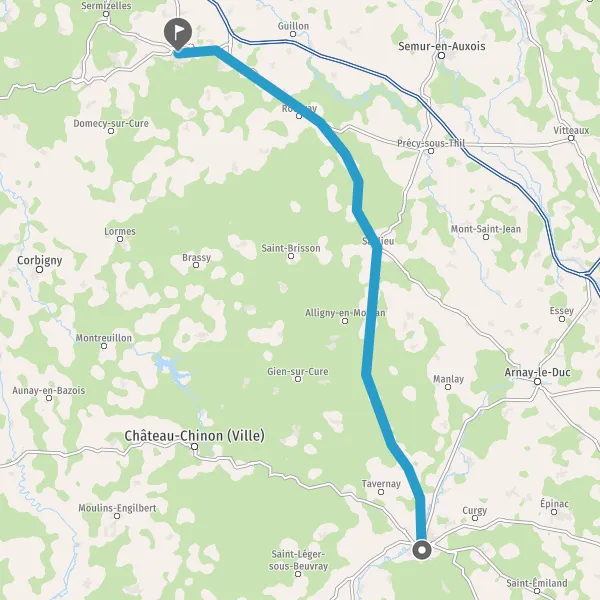 Tourner légèrement à gauche sur D980 (Route Michel de Chaugy) et continuer sur 19 kilomètres