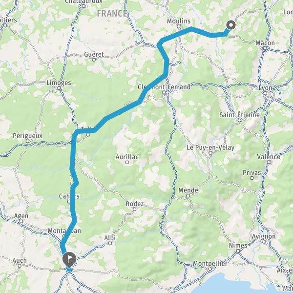 Prendre à droite et rejoindre A89 E70. Continuer sur 160 kilomètres