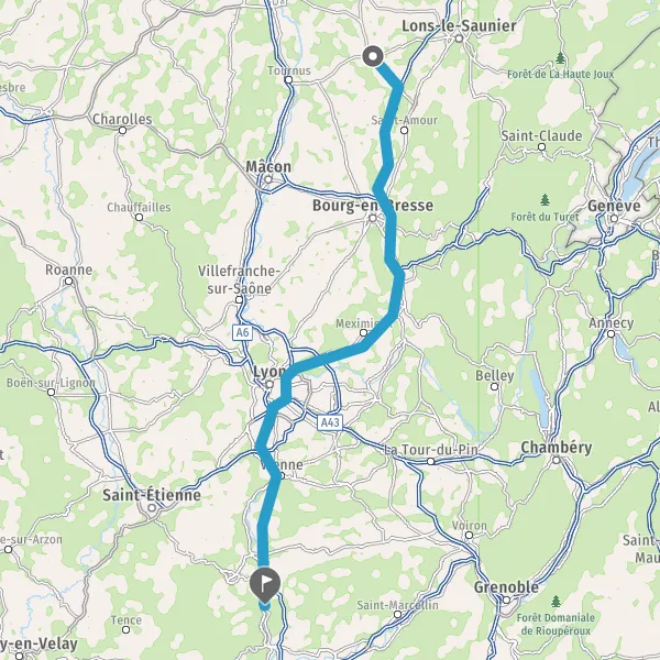 Prendre à droite et rejoindre A7. Continuer sur 46 kilomètres