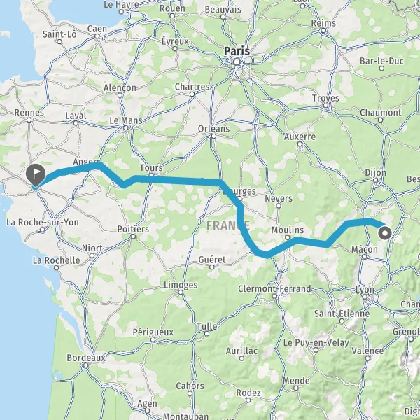 Prendre à droite et rejoindre A85 E604. Continuer sur 205 kilomètres