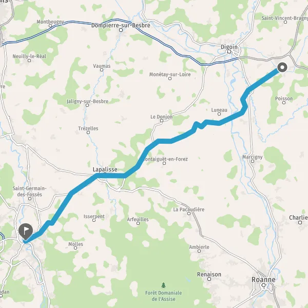 Tourner légèrement à droite sur D989 (Route de Marcigny) et continuer sur 180 mètres