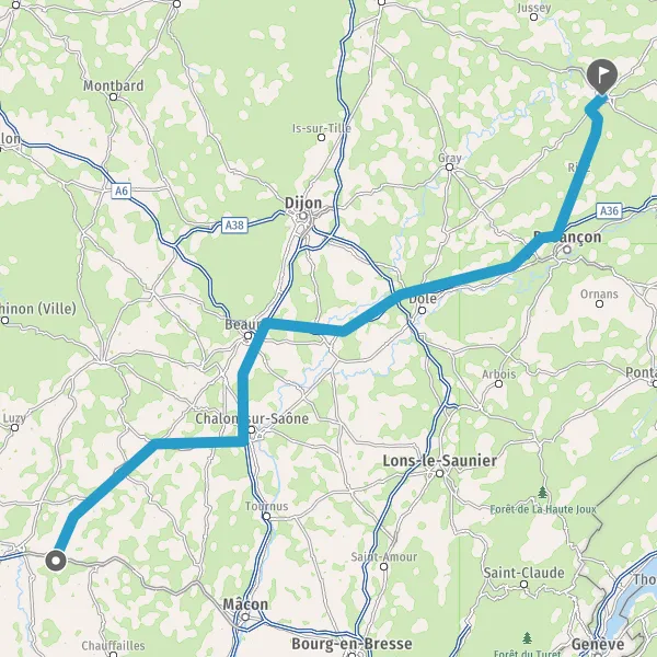 Prendre à droite et rejoindre A36. Continuer sur 92 kilomètres