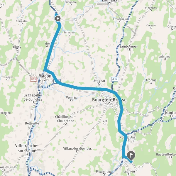 Prendre à droite et rejoindre A40. Continuer sur 60 kilomètres