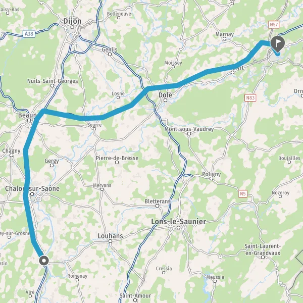 Prendre à droite et rejoindre N57 E23 D75 (N57). Continuer sur 1,6 kilomètre