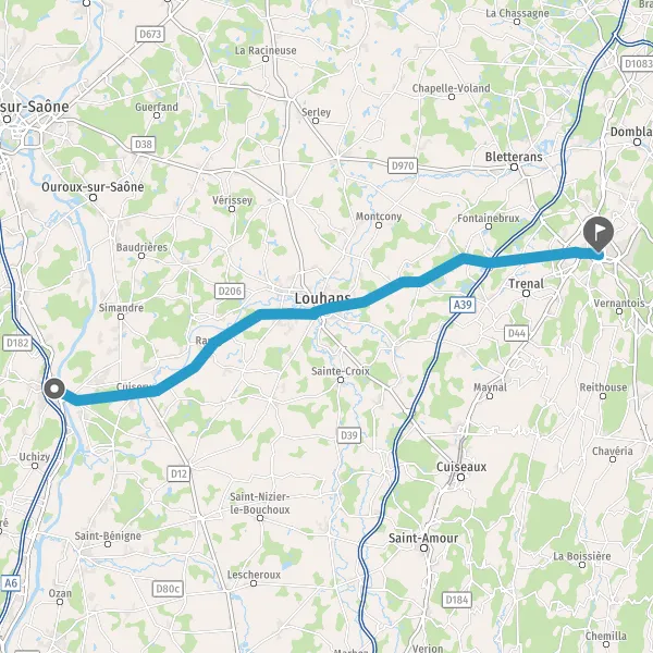 Tourner à gauche sur D971 (Route de Louhans) et continuer sur 18 kilomètres