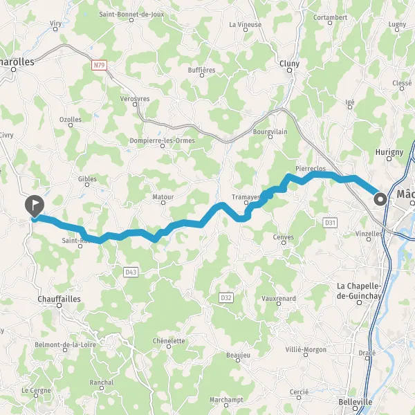 Tourner légèrement à gauche sur D45 (Route de Tramayes) et continuer sur 2,3 kilomètres