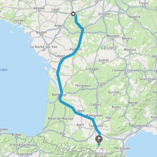 Prendre à gauche et rejoindre A62 E72. Continuer sur 224 kilomètres