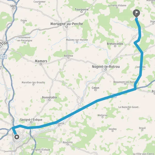 Au rond-point, prendre la 2ème sortie sur D338 (Route d'Alençon) et continuer sur 2,1 kilomètres