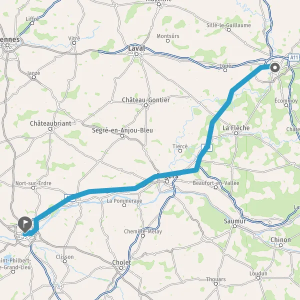 Prendre à droite et rejoindre A11 E50. Continuer sur 3,2 kilomètres