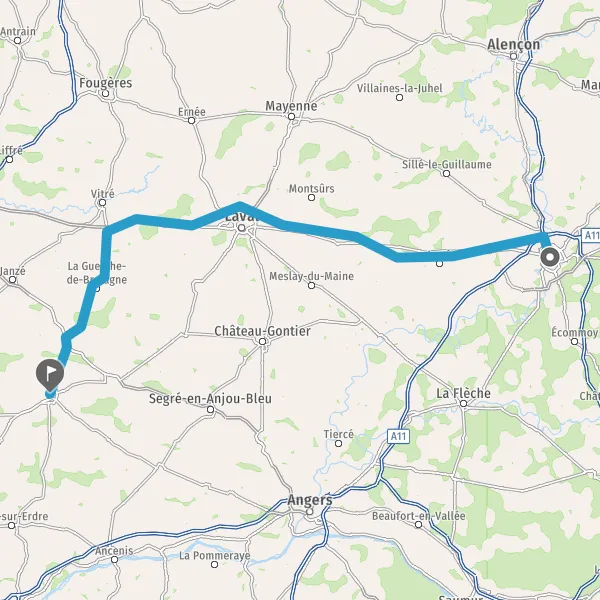 Prendre à droite et rejoindre A11 E50. Continuer sur 3,2 kilomètres