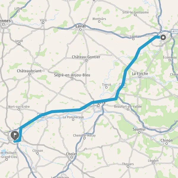 Prendre à droite et rejoindre A11 E50. Continuer sur 3,2 kilomètres