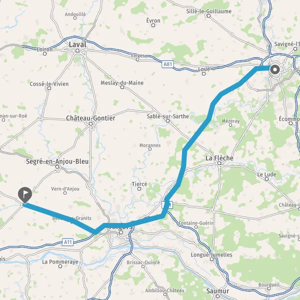 Prendre à droite et rejoindre A11 E50. Continuer sur 3,2 kilomètres