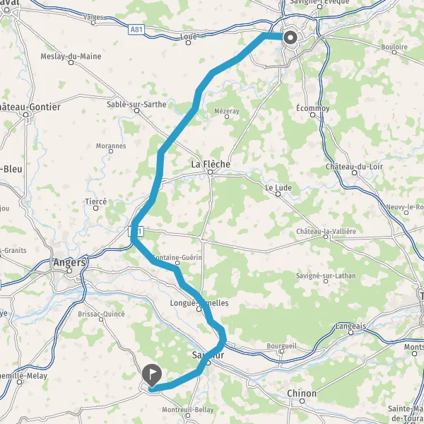 Prendre à droite et rejoindre A11 E50. Continuer sur 3,2 kilomètres