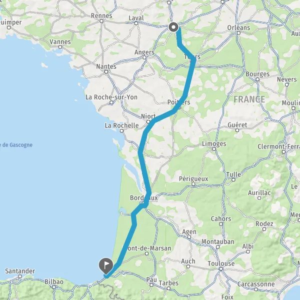 Prendre à droite et rejoindre A63 E5 E70. Continuer sur 161 kilomètres