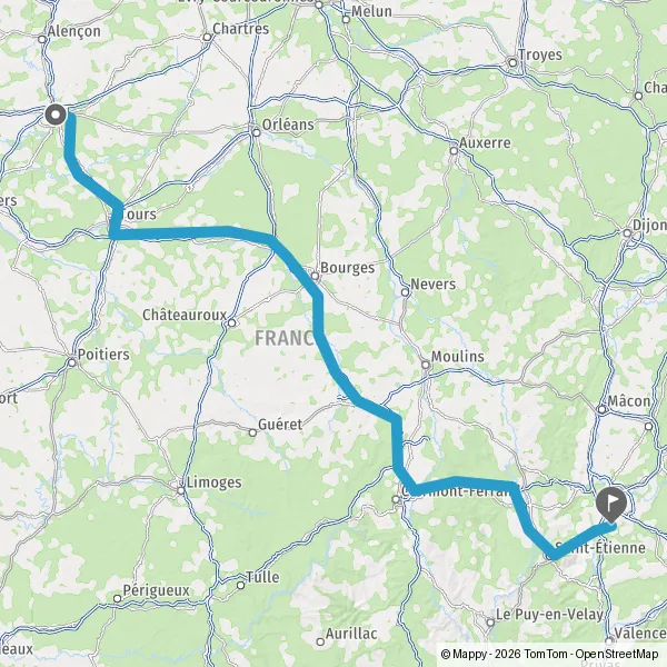 Prendre à droite et rejoindre A85 E604. Continuer sur 106 kilomètres