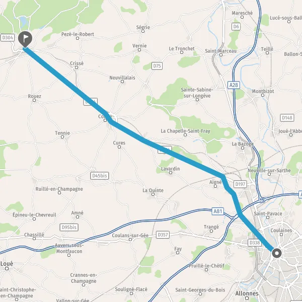 Tourner légèrement à droite sur D304 (Route du Mans) et continuer sur 2,2 kilomètres