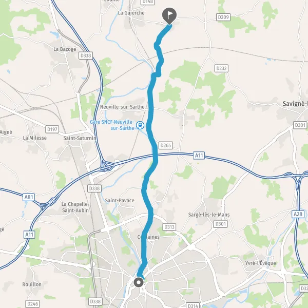 | Distance en voiture | 12,6 km à 13,0 km |