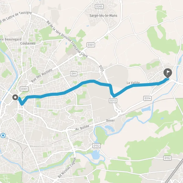 | Distance en voiture | 6,4 km à 8,1 km |
