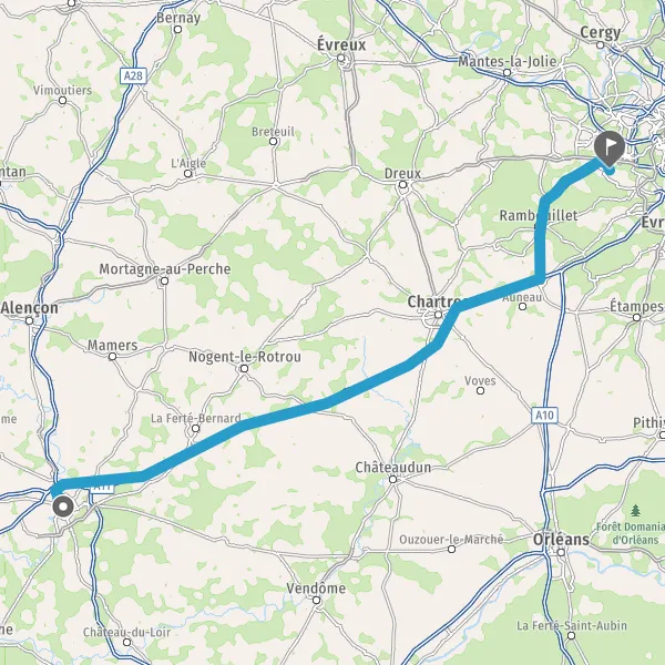Continuer A11 E50 sur 137 kilomètres