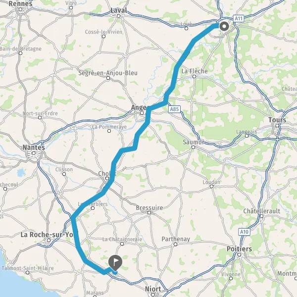 Prendre à droite et rejoindre A11 E50. Continuer sur 3,2 kilomètres