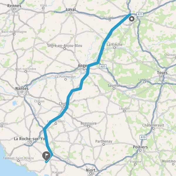 Prendre à gauche et rejoindre A83 E3. Continuer sur 33 kilomètres