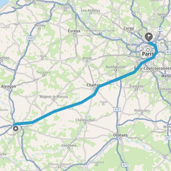 Continuer A10 E5 E50 sur 23 kilomètres