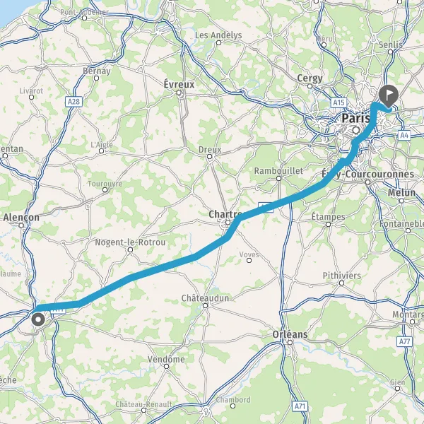 Continuer A10 E5 E50 sur 23 kilomètres