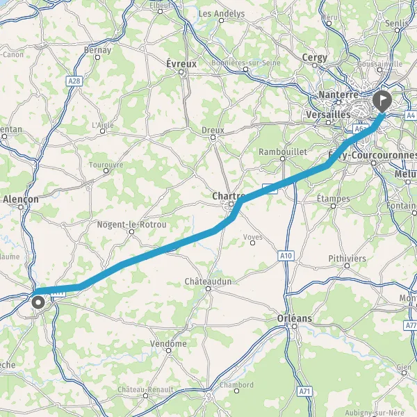 Continuer A10 E5 E50 sur 23 kilomètres
