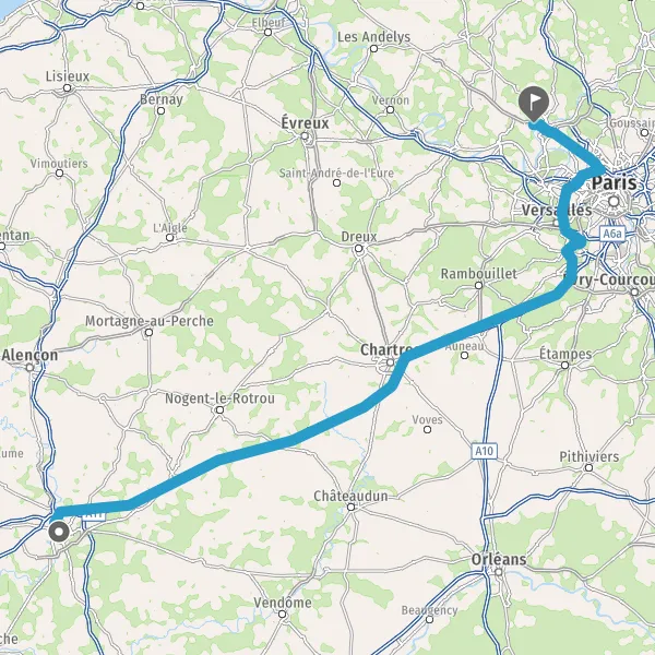 Continuer A10 E5 E50 sur 23 kilomètres