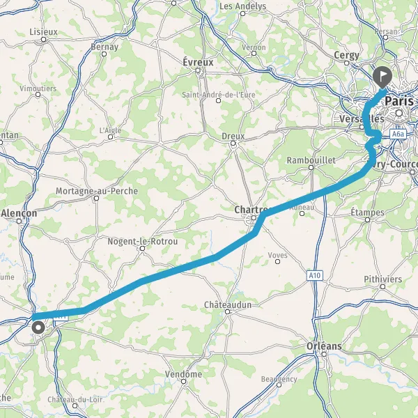 Continuer A10 E5 E50 sur 23 kilomètres