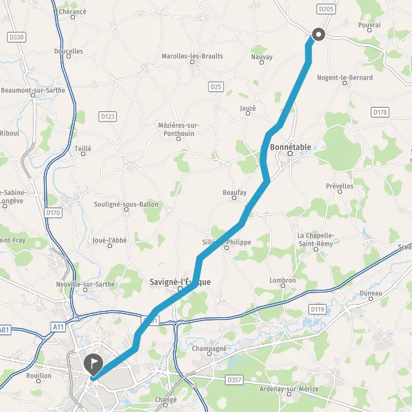 | Distance en voiture | 39,1 km à 39,2 km |