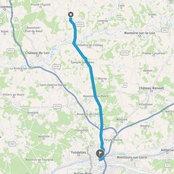 Tourner à droite sur D29 (Route de Tours) et continuer sur 9,1 kilomètres